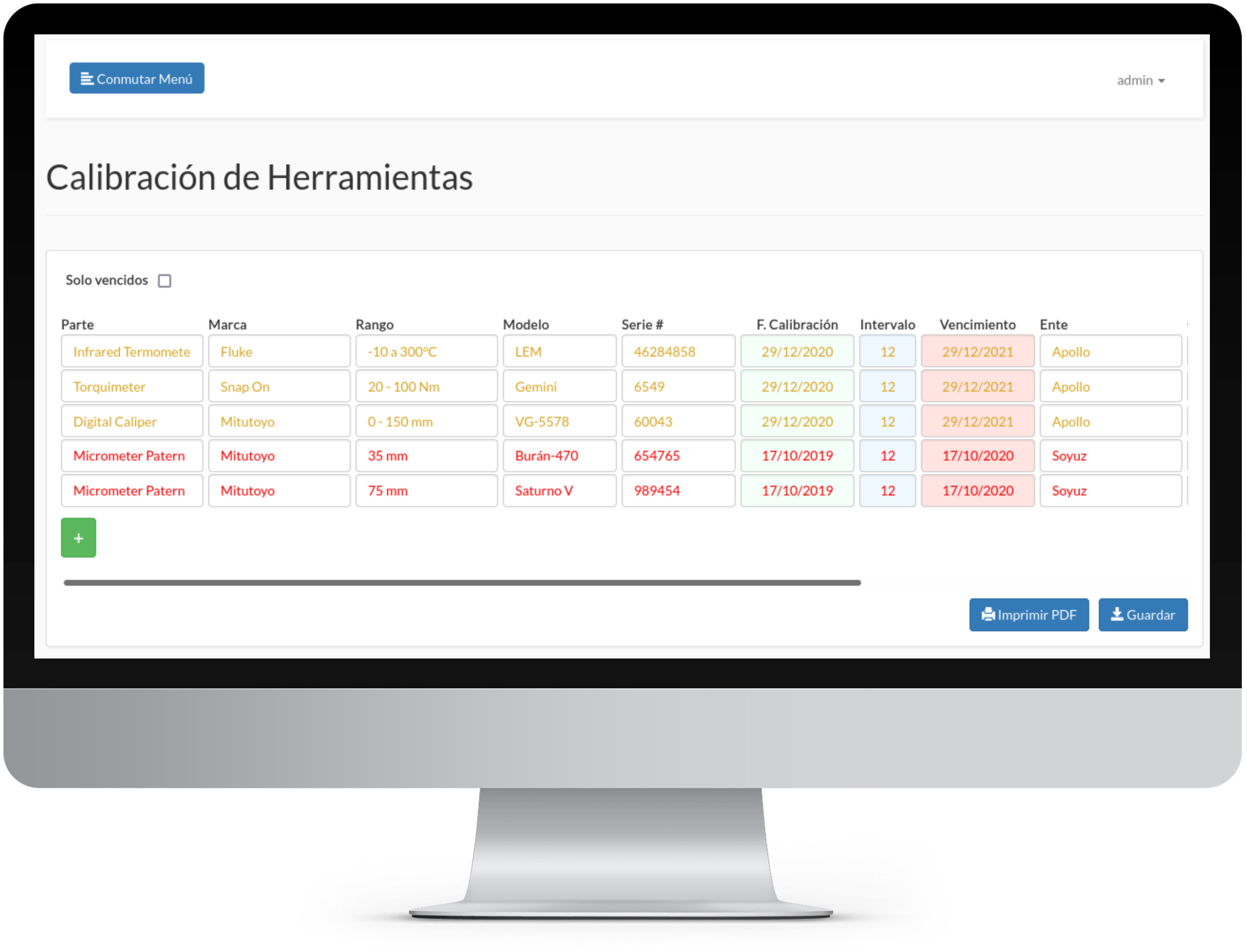 GEMA posee el módulo "Calibraciones", el cual le permite controlar los vencimientos y generar reportes en formato PDF.