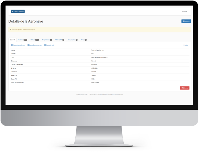 GEMA es el único sistema que conoce las características de los componentes Clase I cargados en su Base de Datos. De esta manera, no es posible equivocarse a la hora de crear una aeronave. Además, esto permite que el sistema genere avisos automáticos si la aeronave no se encuentra debidamente conformada. Su Base de Datos se actualiza de manera permanente con la última información publicada por FAA y EASA respecto de los poseedores del Certificado Tipo.